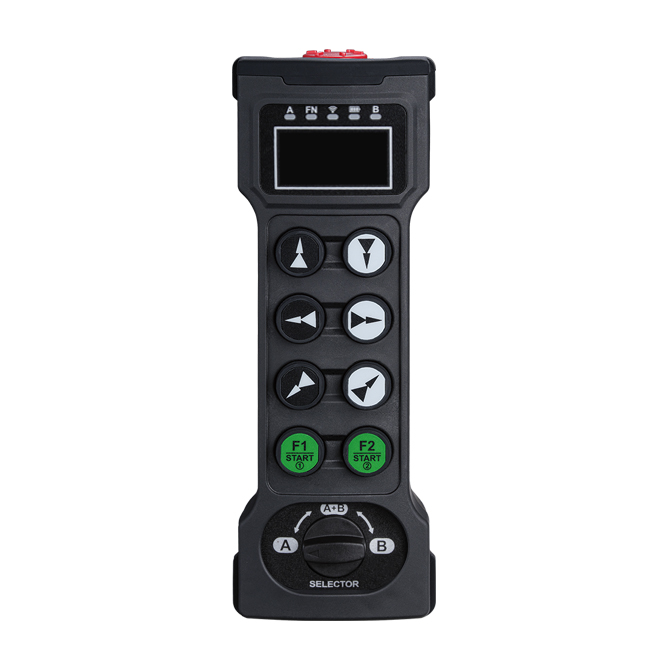 This handheld transmitter is divided into 8 key and 10 key two speed modes to control the corresponding control points, with a unique design of a 90 degree position pointing selection switch, which is convenient for the main and auxiliary equipment to switch linkage functions, and has mechanical directional selection function.